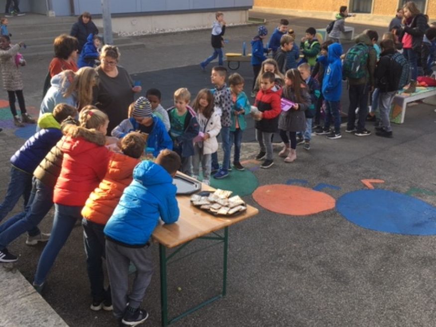 Dafür verantwortlich ist jeweils eine Klasse, die das Znüni wunderbar zubereitet und anschliessend verteilt.