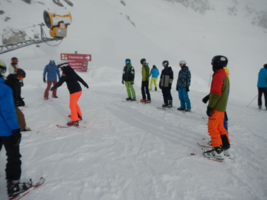 Nach dem Mittagessen unserer genialen Küchencrew, dem Team-Belgaid, ging es zum ersten Mal auf die Piste. Zwar liess die Sicht zu wünschen übrig, jedoch waren wir aufgrund des durchzogenen Wetters fast allein unterwegs.