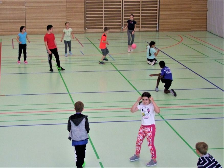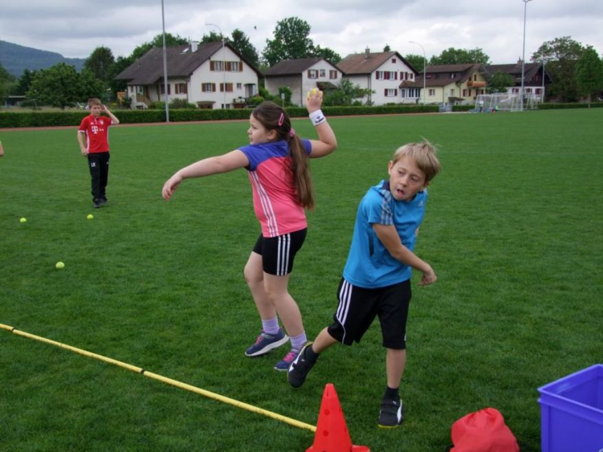 Gutgelaunt massen sich die Schüler/innen in altersgemischten Gruppen von der 1. bis zur 6. Klasse in den Disziplinen Weitwurf, Weitsprung, Sprint, Stafette, Wassertransport, Fussball, Unihockey und Hammerball. Während des ganzen Morgens herrschte eine friedliche Atmosphäre. Alle Kinder wollten zeigen, was sie im Sportunterricht gelernt haben.