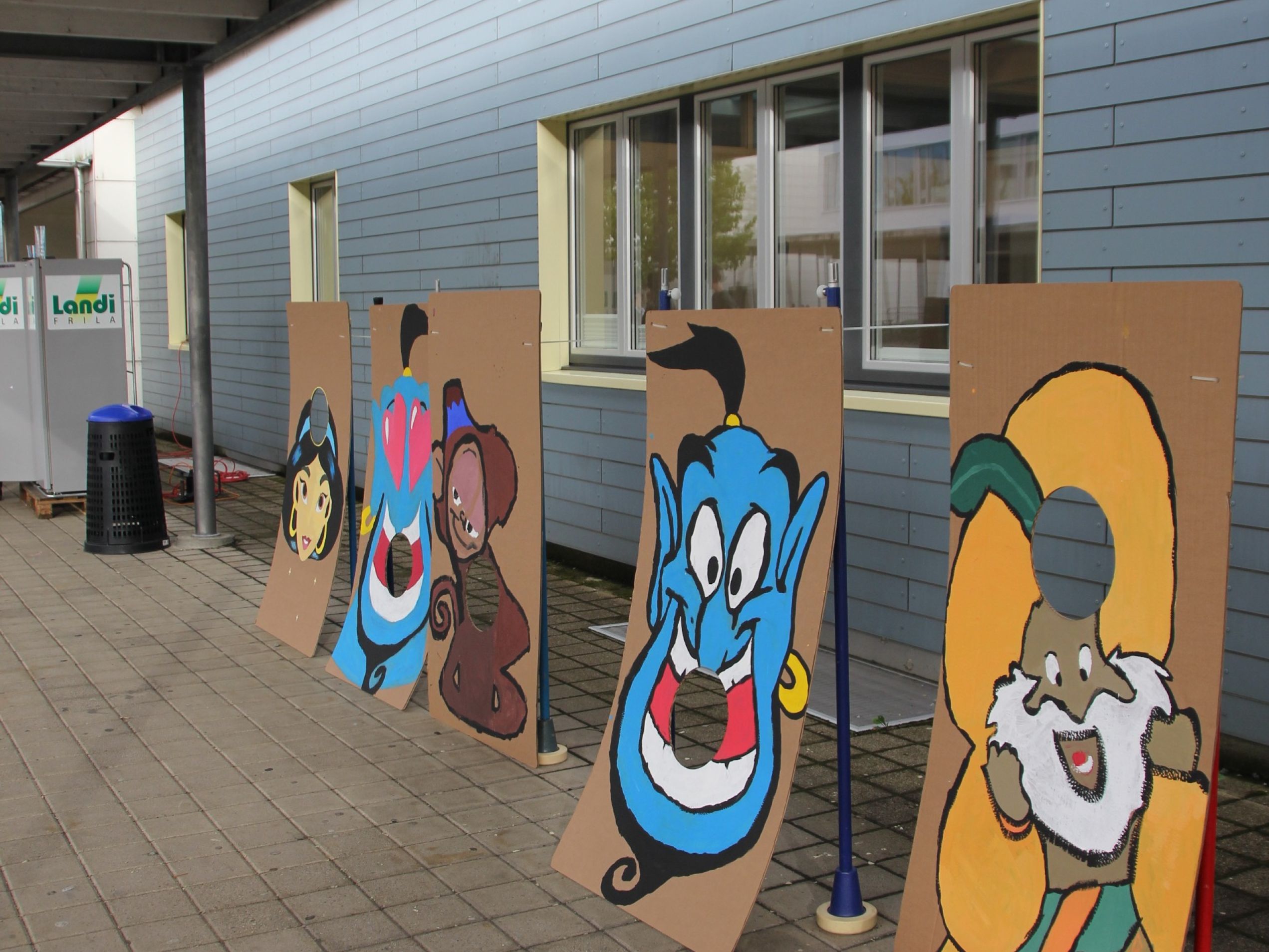 Ein Hauch von Orient wehte am Donnerstag, 28. August 2025, durchs Steinlischulhaus. Orientalische Häuser, Girlanden mit Monden und Sternen und seeehr viele Yasmins und Aladdins begrüssten einen beim Eingang. Drinnen konnte vieles ausprobiert werden: Dröhnende Beats lockten in die Disco, Brettspiele und Computergames warteten auf Spielfreudige, man konnte mit Freunden und Freundinnen für ein Foto mit orientalischen Accessoires posieren oder, wenn die Geduld ausreichte, sich ein Henna-Tattoo auftragen. Die Foodstände der dritten Oberstufenklassen stellten einen draussen vor die Qual der Wahl, und wer sich die angefutterten Kalorien runterschwitzen wollte, konnte sich beim Boxautomaten austoben, einen Veloparcours absolvieren oder Bälle in die Münder von tollen, selbst gemalten Figuren aus dem Aladdin-Film zielen. Auch Live-Musik-Momente gab es: Singfreudige stellten ihr Talent im Karaoke-Raum unter Beweis und die Schüler-Band sorgte für einen lautstarken Höhepunkt, gefolgt von der nicht minder powervollen Sereal-Lehrerband. Wetterbedingt wurde das Fest etwas verkürzt, vielleicht gibt es deshalb einige Auftritte noch in voller Länge zu einem anderen Zeitpunkt zu geniessen. Ein grosses Dankeschön an alle, die zum Gelingen des Festes beigetragen haben!