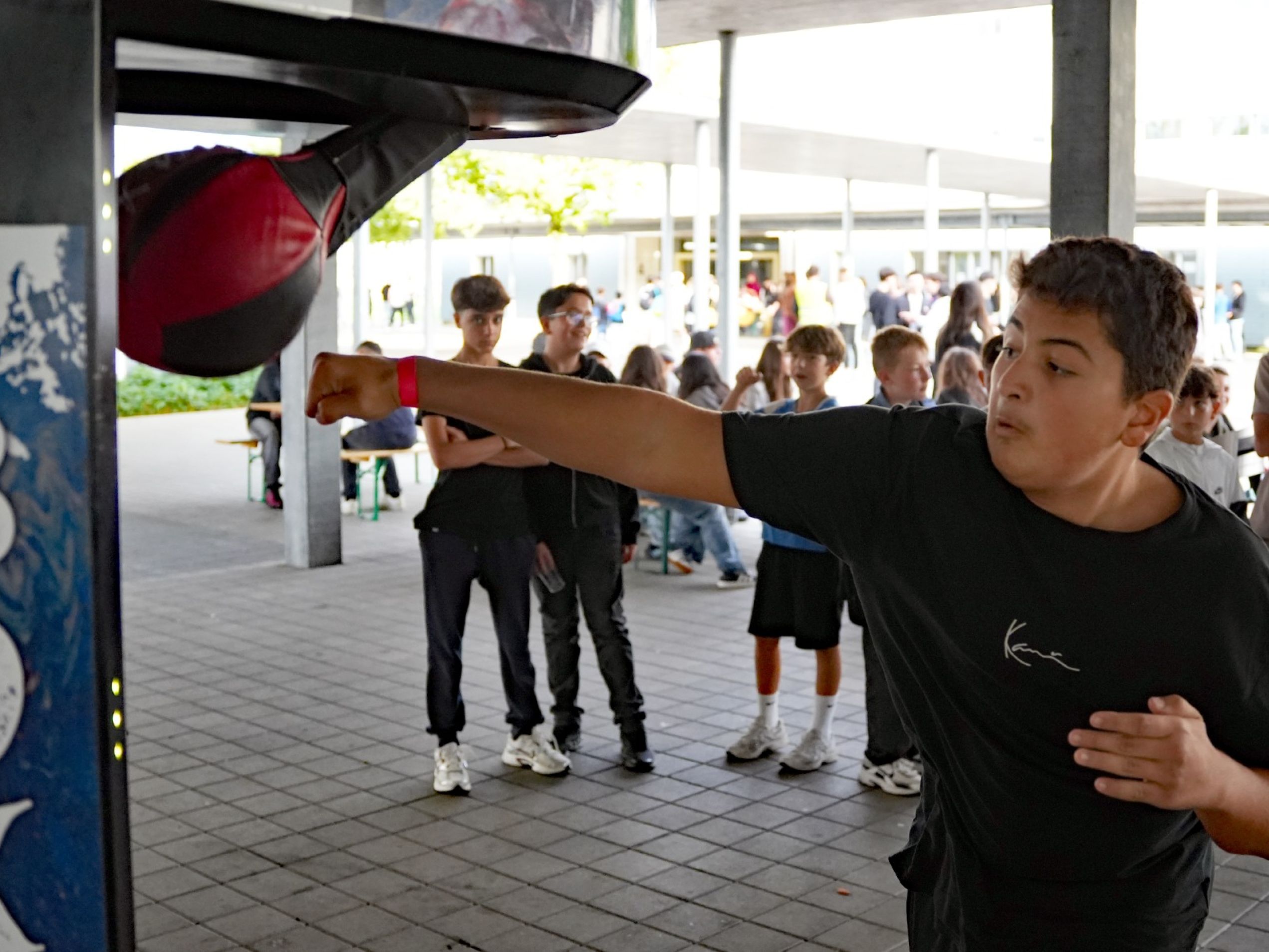 «Und wo gohsch du hütt ane?» lautete eine viel gehörte Frage am Dienstag, 17. Juni, wenn man zwischen acht und neun Uhr morgens über den Pausenplatz schlenderte. So begann, noch kühl und frisch, der diesjährige Sporttag der Sekundar- und Realschule Steinli Möhlin. Am Morgen konnten die Schüler und Schülerinnen aus einer breiten Palette an Sportarten eine auswählen, die sie – vielleicht zum ersten Mal – ausprobieren wollten: Yoga, Fussball, Tanzen, OL, Badminton und vieles mehr stand zur Auswahl. Der Bewegungsradius wurde zudem erweitert durch Angebote wie Reiten in Zuzgen, Golfen in Frick, Biken auf dem Pumptrack in Sisseln oder Velofahren nach Bad Säckingen. Wieder andere wagten sich hoch hinaus beim Bouldern in Pratteln oder waren von weither hörbar, als sie beim Stand Up Paddeling den Rhein hinunterfuhren.