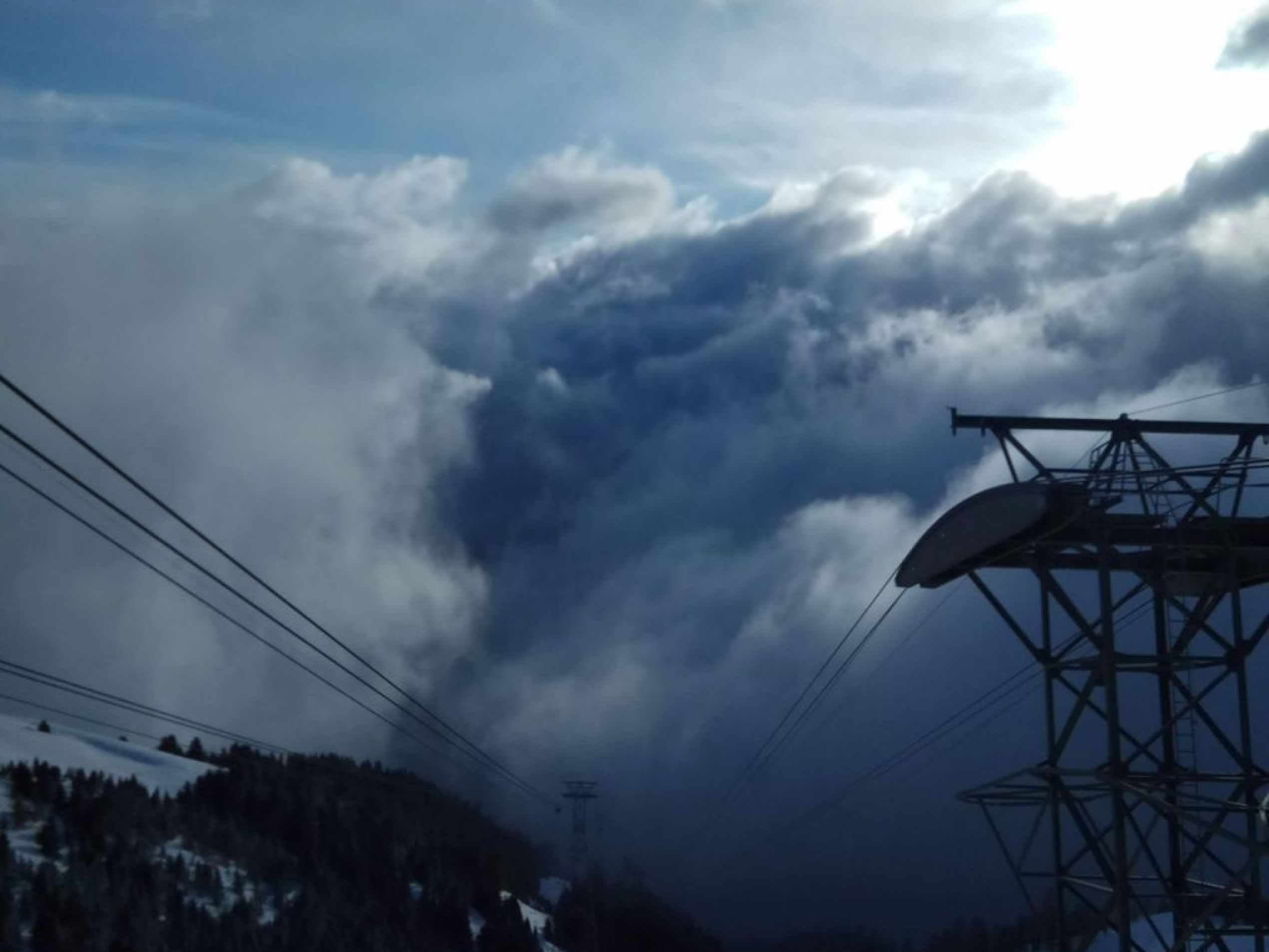 Nach dem Mittagessen unserer genialen Küchencrew, dem Team-Belgaid, ging es zum ersten Mal auf die Piste. Zwar liess die Sicht zu wünschen übrig, jedoch waren wir aufgrund des durchzogenen Wetters fast allein unterwegs.