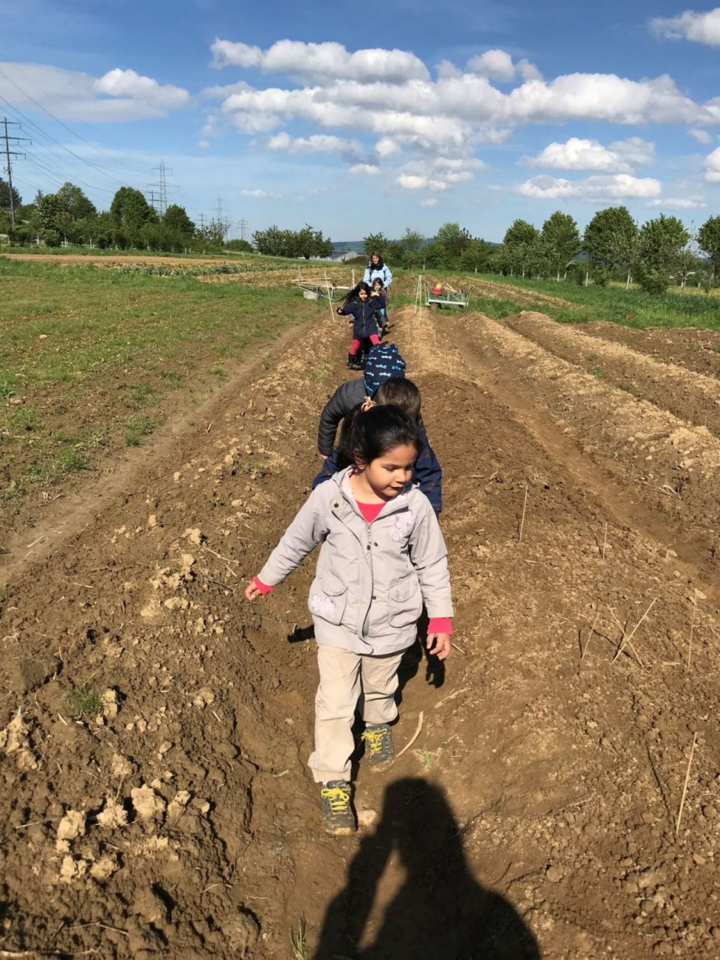 Passend zum Thema Bauernhof ging es für den Kindergarten Fröschmatt1 auf den Eulenhof. Die Kinder lernten wie man Kartoffeln setzt und wie man Karotten und Radieschen ansät. Nach einem Znüni und einer Spielpause, wurde der Wunsch der Kinder erfüllt und sie durften nochmals «ihre Schafe» besuchen, welche sie bereits von einem vergangen Bauernhofbesuch im März kannten.