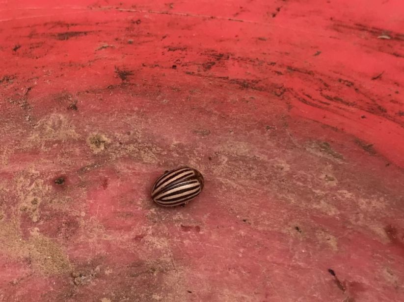 Als erstes ernteten wir die Radieschen. Danach jäteten wir bei den Karotten das Unkraut und lockerten die Erde auf. Nachdem die Karotten versorgt waren, ging es zu den Kartoffeln, dort lockerten wir die Erde und schaufelten die Erde danach unter die Pflanze, damit die Kartoffeln beim Wachsen gut mit Erde bedeckt sind. Jetzt wurde es lustig, wir suchten das ganze Beet nach „Kartoffelkäfern“ ab und sammelten diese ein, denn diese sind die Feinde der Kartoffelpflanze.