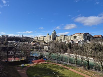 Trotz anfänglich wunderschönem Wetter zogen jetzt Wolken auf und es begann etwas zu regnen. Der Regen konnte uns aber nichts anhaben. Nach der Mittagsrast gingen wir weiter zum Bärengraben, einer weiteren Sehenswürdigkeit der Stadt. Die Bären waren jedoch nicht vor Ort, klar, es war ja Winter.